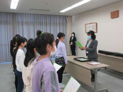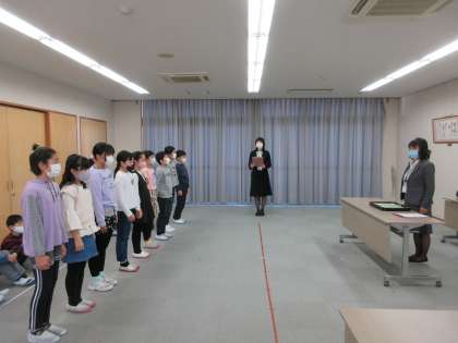 修了式を行い、各学級の代表の子供たちに修了証を渡しました。どの子供たちも教室で、大変立派な態度で参加しました。