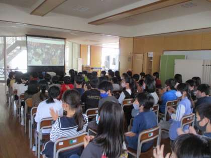 新一年生の入学式にライブ配信で参加しました。入退場では、一緒に拍手をするなど、場所は離れていても気持ちを一つにしてお祝いしました。
