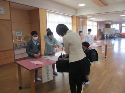 かわいい1年生が入学してきました!6年生は、たくさん1年生と関わる機会があるので、入学してくるのをとても楽しみに待っていました。今日は、受付や、ランドセルの片付けの手伝いを頑張りました。