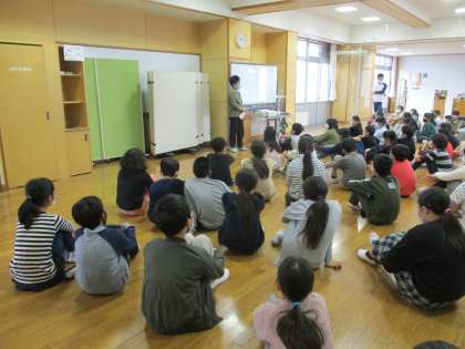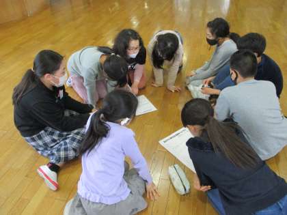6年生の思いをもとに、代表委員会で決めた児童会スローガンが運営委員長から発表されました。それを踏まえて、各委員会の目当てを決定し、児童会発足式で全校にどんなことを伝えたいか話し合いました。