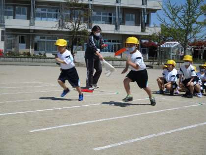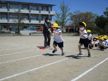 本日は快晴!!1年生は、初めての50m走をしました。ゴールをまっすぐ見て、一生懸命走りました。明日も50m走をしますよ!今日よりも速く走れるかな?頑張ろう!