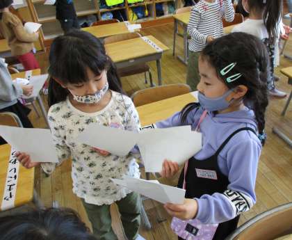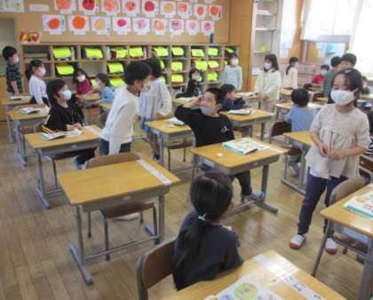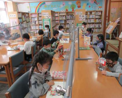 本日もいきいきと学習をしていました。自分から手を挙げて発表する子供が増えてきました。写真は図書室で本を借りたり、国語の時間に自分が書いた名前を友達に渡し、交流を深めたり、場に応じた言葉の使い方について学習したりしました。
