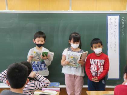 今までの学習を生かしながら、登場人物の気持ちになって、音読をしてきましたが、今日は友達と役割を決めて、グループごとに音読を聴き合いました。どのグループも、登場人物になりきり、心を込めて音読しました。