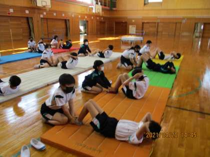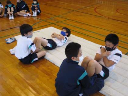 今、体育ではスポーツテストを行っており、上体起こしや反復横跳び、立ち幅跳び等、様々な種目に熱心に取り組んでいます。よりよい記録が出るように頑張っていますよ。