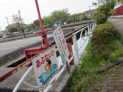 3 遊歩道脇の用水に気を付けます。用水に入って遊んではいけません。また、大切な物が用水に落ちたとしても、取りに入らず、必ず大人の人に相談します。