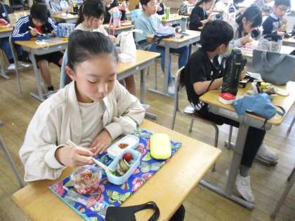 美味しいお弁当を食べて、エネルギーをチャージし、午後も学習を頑張りました。保護者の皆様、休日の朝早くからお弁当の準備ありがとうございました。