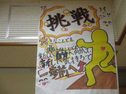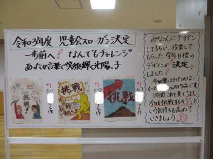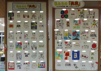 各クラスで「『挑戦』ロゴコンテスト」を行い、クラスの代表を決めました。その後、学年で投票し、今年度の学年目標のデザインが決定しました!