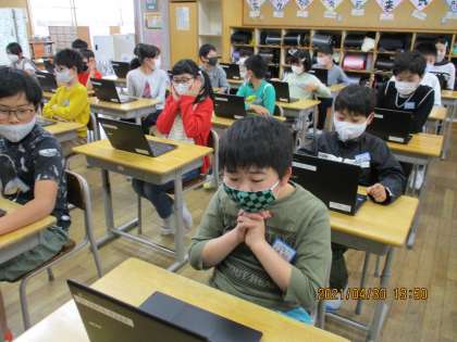 先週の金曜日、5年生のGIGAスクールが始まりました。一人一台パソコンを使って、初めてクラスのページにログインしました。パソコンを触る前には、教頭先生、中野先生から、GIGAスクールについての説明を聞き、気をつけることも教えていただきました。