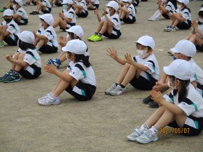 本日は全校で応援練習がありました。初めての応援でしたが6年生の話をよく聞き、自分たちの団の応援に一生懸命取り組んでいました。特に、三三七拍子がお気に入りで、教室に戻ってきてからも、みんなで練習をしていました。