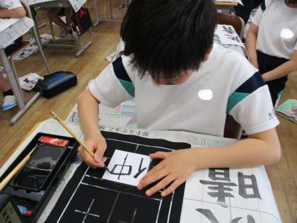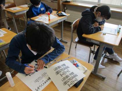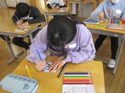各クラスで「どんなクラスにしたいか?」「どんな姿で卒業したいか?」、自分たちの思いをよく伝え合い、学級目標を決めました。それを教室の前に掲示するために、子供たちがデザインを考えました。