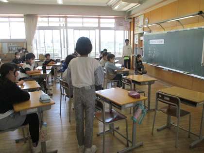 運営委員会から、運動会のスローガンの発表がありました。それを受けて、「どんな運動会にしたいか?」「最高学年としてどんなことを頑張りたいか?」話合いました。