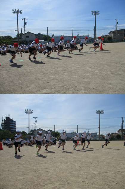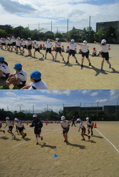 今日は、団体競技の練習や70m走の練習、応援の練習と盛りだくさんの1日でした。暑い中よく頑張りました!しっかり休養し、明日も元気に登校してくださいね!