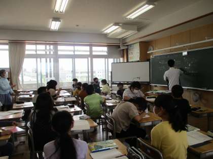 前回までに、クラスでテーマを決めて、自分の意見を整理したので、実際に話合いをしてみました。1組は「水遊びに行くなら海がよいか、プールがよいか」、2組は「学校では、シャープペンシルよりも鉛筆を使った方がよい」、3組は「夏に行くなら海よりプールがよい」のテーマでした。