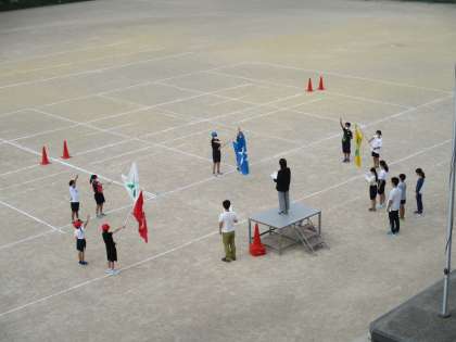 子供達一人一人が自分の役割に責任をもち、頑張っています。いい運動会のなりそうです。写真は、開会式の練習の様子です。