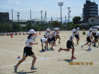 暑い中、精一杯競技する姿、互いに「お疲れ!」「頑張ったね!」と声をかけ合う姿、他学年の競技も熱心に応援する姿など、高学年らしいすてきな様子がたくさん見られました。来年は自分たちが引っ張る番ですね!期待しています。