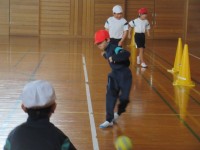 今日の体育は、外でソフトボール投げの練習をしました。何度も練習をして、少しずつ投げるこつをつかみ、遠くに投げることができるようになってきました。次は助走をつけて、投げてみましょうね。もっと遠くまで飛ばすことができるようになりますよ。