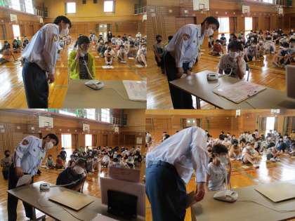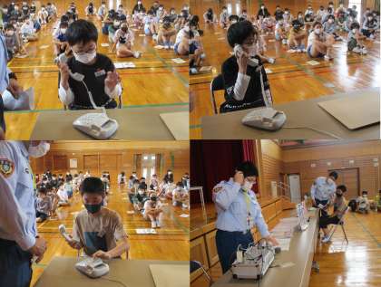 その後、「119番通報体験」を行いました。「119番通報」をする際には、何を伝えたらいいのか、どんなことを聞かれるのか、6名が実際に体験しました。もし「119番通報」をすることがあったら、今日の学習を生かして、落ち着いて通報しましょう。