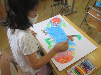 前回に描いた「ふしぎなたまご」。いよいよたまごを割って、楽しい世界を描きます。