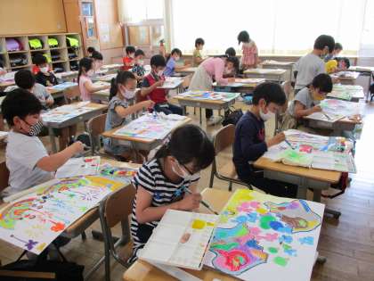 割れたたまごから何が飛び出すか、みんな想像力を働かせて、楽しみながら活動に取り組みました。仕上がりが楽しみです。