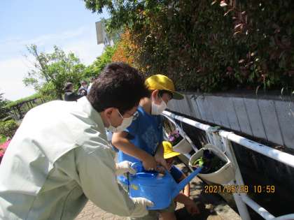 地域の方々と花苗を植えました!遊歩道には、きれいな花が咲き誇っています!今後も水やりを続けて「笑顔の花」を咲かせ続けましょう!