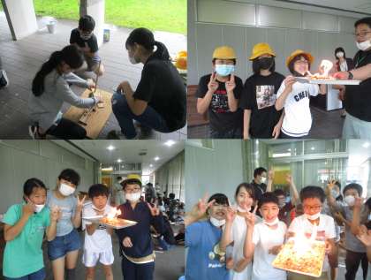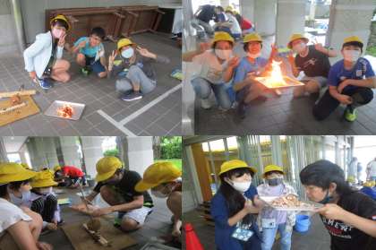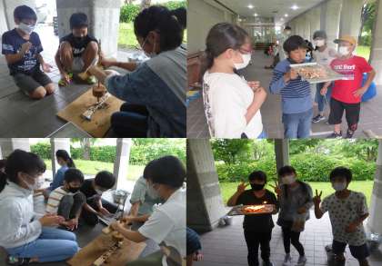 3つ目は、火起こしです。コツがいるので、とても苦労していました。また、今日は風も強く、なかなか火がつきませんでした。なので、火がついた時には大喜び!疲れも吹き飛びました!!