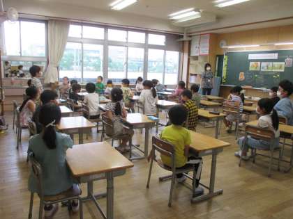 1組は、道徳科の学習をしています。「きまりをまもるには、どんな力がひつようか」考えました。話をする友達の話をしっかり聞こうと、体の向きをかえて真剣に聞いています。