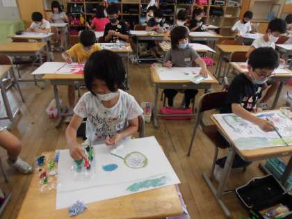 本日の3年生の学習の様子です。図工では、6月をテーマにした絵を描いたり、算数で暗算の学習をしたりしています。暑さに負けず、真剣に取り組んでいます。
