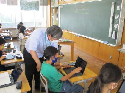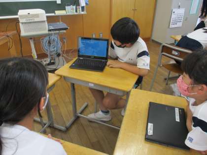 毎日のようにパソコンに触れている子供たちは、少しずつ操作に慣れてきたようです。社会科の調べ学習で使ったり、理科の観察に使ったり、総合で自分クイズを作ったりして、友達と楽しく学習しています。