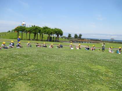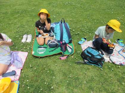おいしいお弁当を食べた後は、冒険広場で友達となかよく、元気いっぱいに遊ぶ子供たちです。