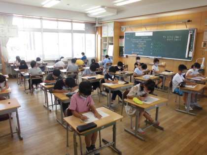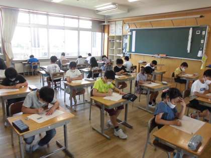 3年生では、1学期の学習のたしかめテストが始まっています。子供たちはこれまでに学習してきたことを発揮しようと一生懸命に頑張っていました。