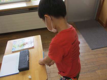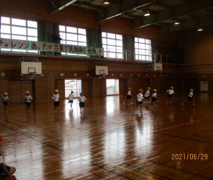 最近は、気温が高くなりましたが、教室のエアコンがついていますので、快適に学習することができています。写真は、算数で長さをはかっている様子と、体育でシャトルランをしている様子です。
