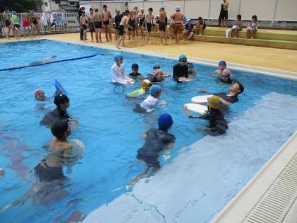 プール学習は、「イルカ」「メダカ」「ラッコ」の3チームに分かれて学習を進めていきます。