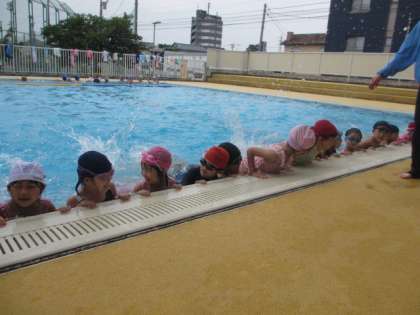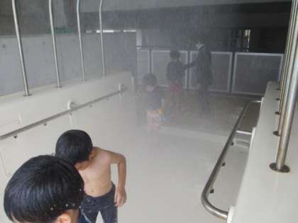 本日は初めて水泳学習をしました。冷たいシャワーも楽しみながら浴びました。コース毎に分かれて、練習をしました。初めてでしたが、学校のプールの約束をしっかりと守り、楽しんで学習することができましたね。