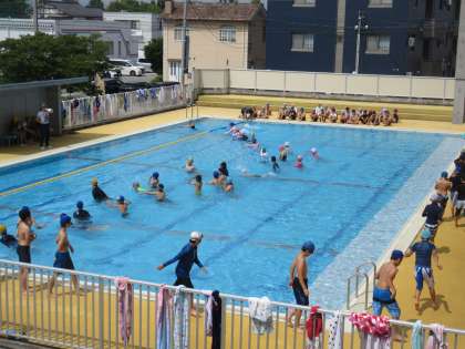 昨日プール開きがありましたが、5年生は今日入水しました。天気もよく、プール日和でしたね。久しぶりのプール学習にうきうきする子供たちでした。潜ったり、泳いだりして、水泳技術を磨きましょう!