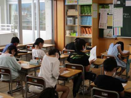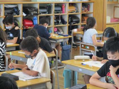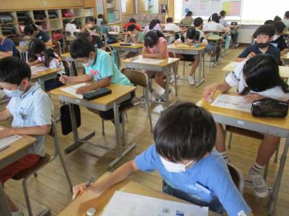 今日は社会科のたしかめテストを行いました。教科書を見返したり、友達と問題を出し合ったりして復習をする子供たち。テストが始まると、みんな真剣に最後まで粘っていました。