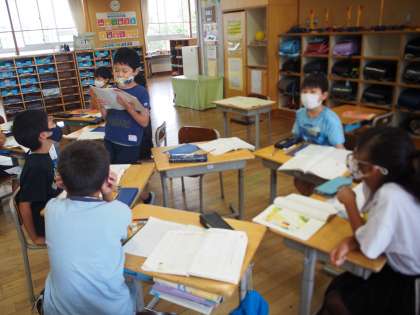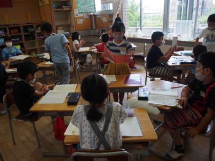 今日は、「まいごのかぎ」の感想を伝え合いました。より伝わるように、言葉を精選して分かりやすく伝えました。一生懸命話しを聞いたり、伝えたりしました。