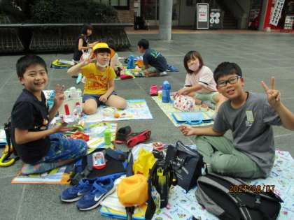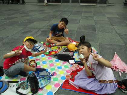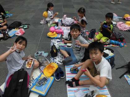 午前中、たくさん見学した後は、お腹ぺこぺこ・・・。待ちに待ったお弁当を食べるときの様子です。子供たちはとてもおいしそうに、口を大きく開けてもぐもぐ食べていました。