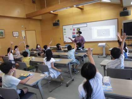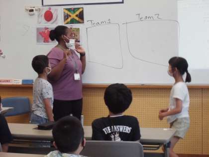 今日はALTのタミーカ先生と外国語活動を行いました。タミーカ先生の出身地であるジャマイカについて教えてもらったり、音楽に合わせて体を動かしたりして楽しく活動することができました。