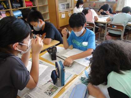 根から吸収した水はどうなるのかや、植物はどのようにして成長するための養分をつくっているのかについて、実験をしながら確認しています。植物も、人間と同じように、生きていくための仕組みがたくさんあることが分かりました。