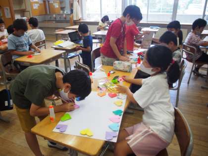 子供たちは、集会に向けて飾りやゲームの準備をしました。一生懸命取り組んでいました。