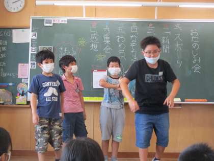 各学級で楽しい集会が行われました。お笑いのネタを披露したり、ゲームをしたり、クイズ大会をしたりと、どの係も工夫を凝らした発表でした。