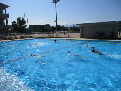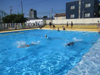 プールの水面がキラキラと輝くほど、太陽がさんさんと輝く中、記録会行いました。最後のプール学習ということで、それぞれが自分の最高記録に挑戦していました。泳ぐ距離、タイム、個人メドレー等に挑戦、それぞれが目標をもって学習に取り組むことができました。