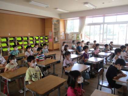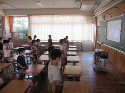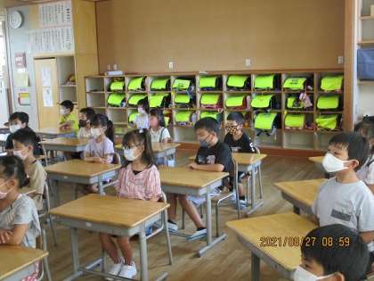 今日は2学期の始業式でした。久しぶりに友達に会えて、子供たちはとても嬉しそうでした。校長先生や教頭先生、養護の先生のお話を聞いた後、頑張って取り組んだ宿題を提出したり、掃除をしたりしました。