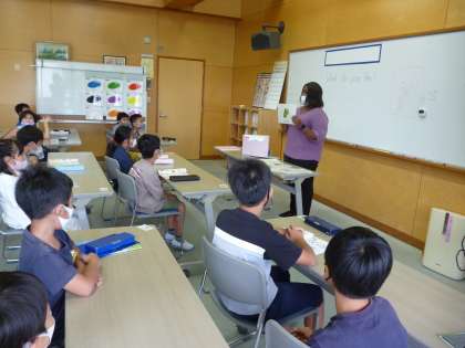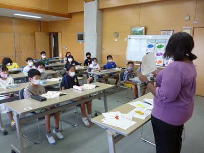 2学期から2週間に1回、ALTのタミーカ先生と外国語活動を行うことになりました。元気いっぱいに発音練習したり、ゲームを楽しんだりして、子供たちは次回が楽しみな様子でした。