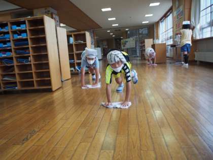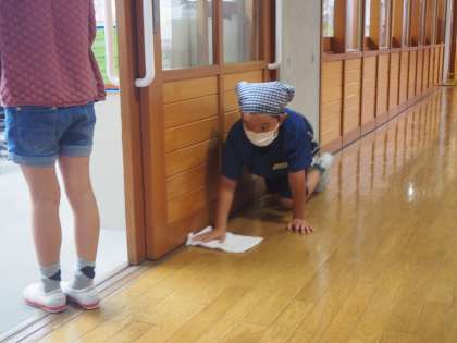 一生懸命掃除を頑張っています。黙働で、隅々まできれいに掃除をしました。