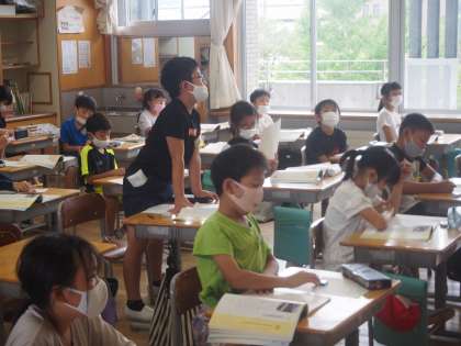 今日も勉強を頑張りました。音楽では、リズムに合わせて体を動かす活動を楽しく行いました。国語では、山小屋へ持って行く物について進んで発表しました。
