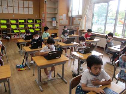 1年生では、ミートというアプリに繋ぐ練習をしています。子供たちは、先生や自分の顔を見ることができ、喜んでいました。何回か練習するにつれて、素早く繋ぐことができていました。学校で何回か練習はしてみましたが、お家で繋ぐ際は、またサポートをお願いします。