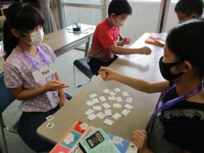 外国語科では「Who is ○○?」や「She can △△」を使って、身近な人を紹介する学習をしています。カードを使ってゲーム形式で楽しみながら学習しています。