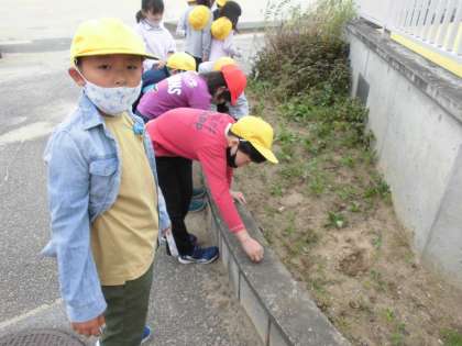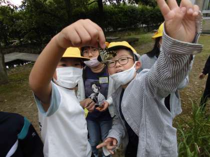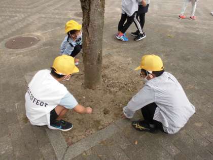 理科の学習で昆虫のすみかについて調べています。光陽小学校の周りの自然で、どんなところに昆虫が住んでいるのかよく目をこらして調べている子供たちでした。