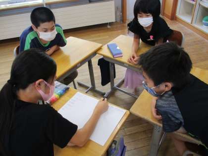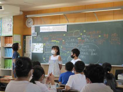 学習発表会の目当てを各クラスで話し合いました。「合唱だから、みんなで協力したい」「学年目標のプラス1を入れたい」など、大事にしたい言葉を出し合い、目当てを決定しました。